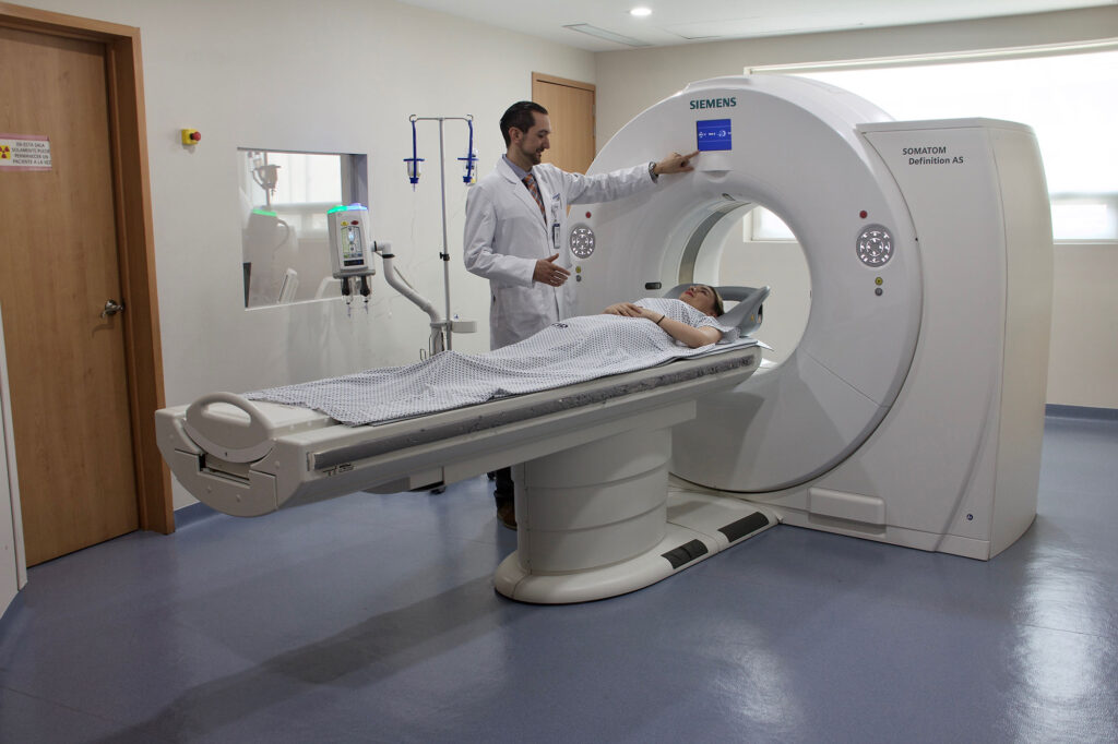 Un escáner de tomografía gira alrededor del cuerpo emitiendo múltiples haces de rayos X desde diferentes ángulos. Luego, una computadora procesa estas imágenes para crear cortes transversales o imágenes tridimensionales de órganos, huesos y tejidos.